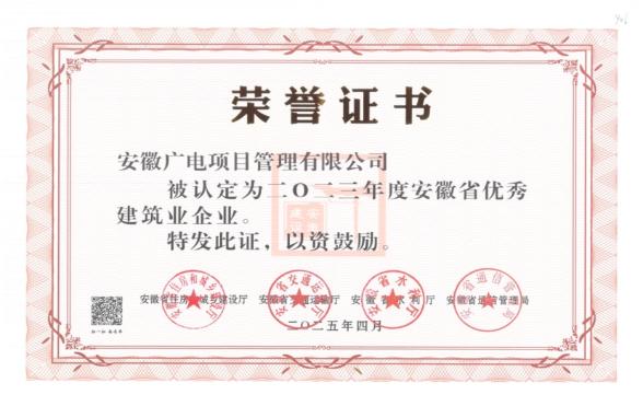 载誉前行 ▏广电项管荣膺“安徽省优秀建筑业企业”称号